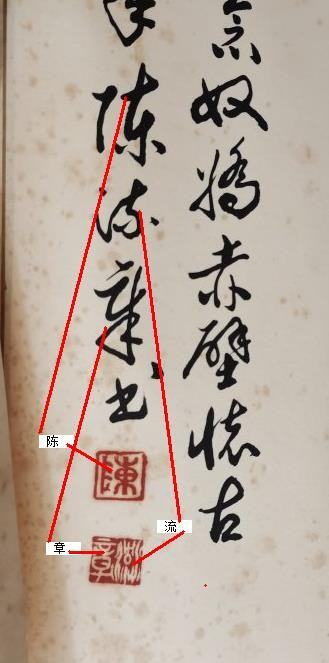 这两个合起来就是作者的名字“陈流章”,这在上面的草书落款上也可以看到: