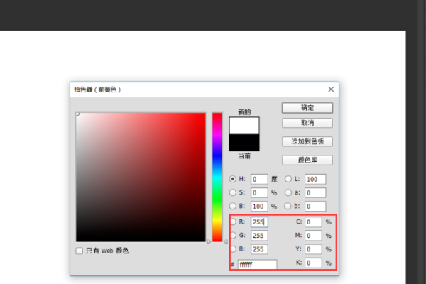 4、色值上方可以看到RGB的具体数值,所以常用颜色:红色的RGB数值就是【255,0,0】。