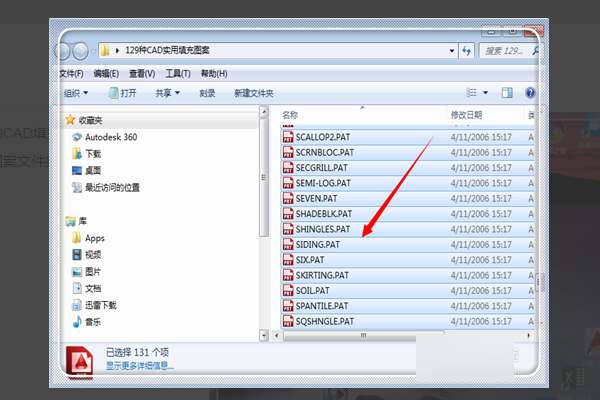 2、我们点击进入到填充图案文件夹中,使用“ctrl+A”选中文件,再使用“ctrl+C”复制所有的填充图案文件。