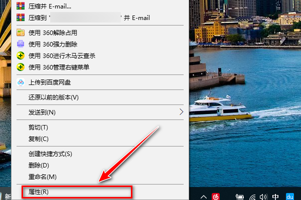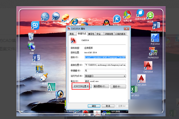 3、然后我们在桌面上右键点击所需要安装填充图案的CAD图标,在弹出来的界面上选择“属性”选项。