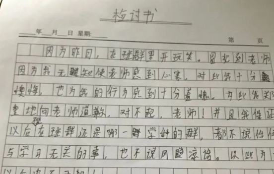 这几天我深刻的认识到了我的错误,知道了老师说的话不能够装做没有听见,老师说的话就要听从,老师说的话也绝对会实现她的诺言,老师所要管的一定是为了我们学生好,所以我们不用挑战老师的纪律,我们还是学生,没有能力对老师说出来的话产生不听从的想法,我们学生唯一可以做的事情就是好好的听从老师的话,好好的学习好,让老师可以放心,让老师可以信任。