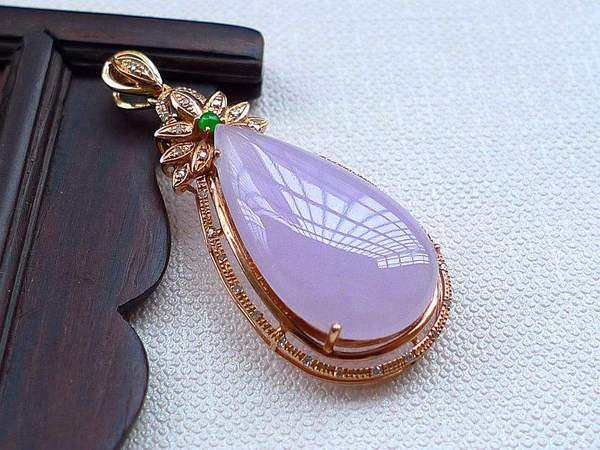 紫色翡翠的颜色更为鲜艳,有些甚至有点浓艳,这样的翡翠,K黄和K白以及玫瑰金其实都可以,紫色深的更推荐K黄作镶嵌底座,显得贵气;紫色偏浅的推荐玫瑰金,能让紫翡的颜色显得更娇艳。