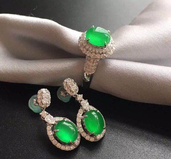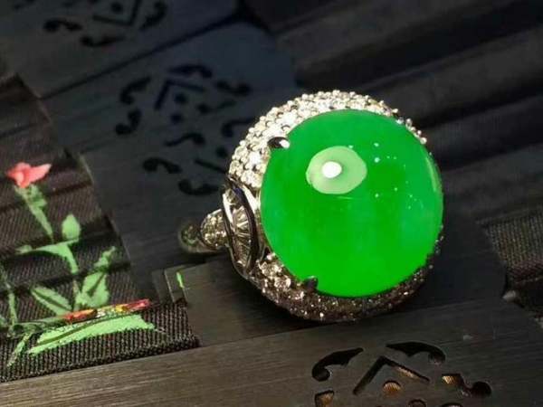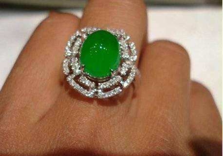 翡翠的颜色很鲜艳的话,推荐用K白去作为镶嵌底座,既显得清爽时尚,也更能衬出翡翠的绿。