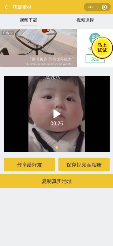 手机里都带有一个小红书ID的水印的视频,想去掉水印,点击分享,复制链接,如图: