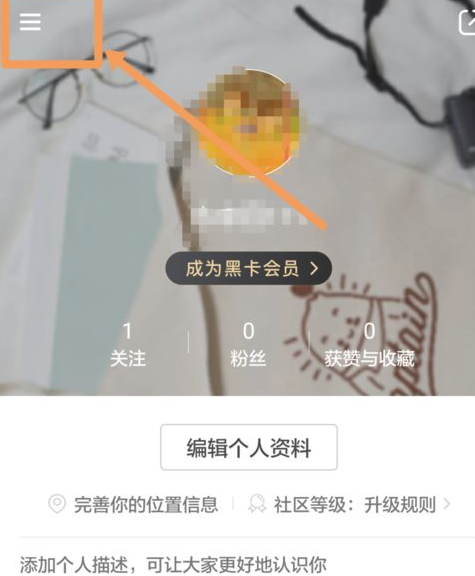 1、进入小红书【我】的界面,点击左上角的菜单栏按钮,如图。
