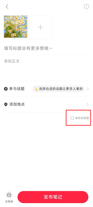 在小红书上传视频了的之后,在发布笔记的页面选择不保存到相册,如图: