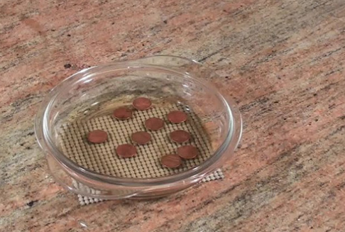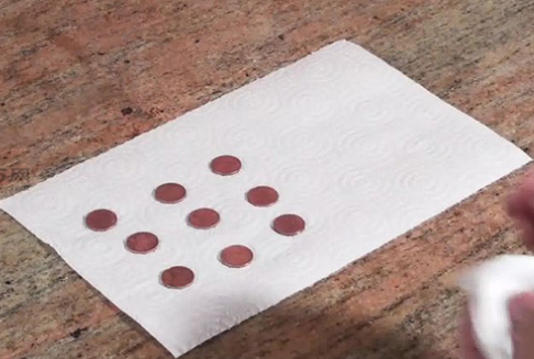 3、浸泡时,要确保每个硬币不与其他的完全重叠在一起。