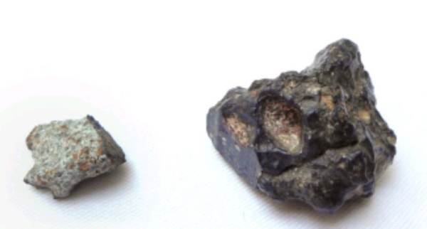 ●陨石在大气层中燃烧磨蚀,形态多浑圆而无棱无角。