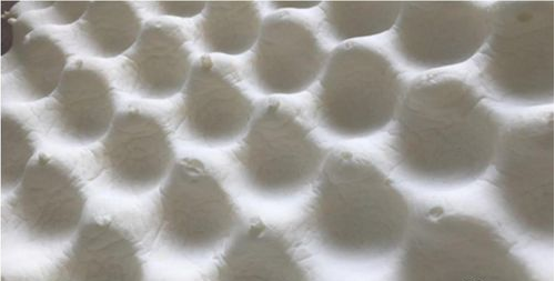 二、真的乳胶枕成分是天然乳胶,在磨具成型后,枕芯表面会很粗糙,图片我们已经放大。