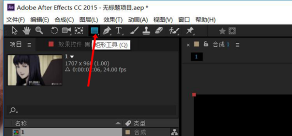 5、点击纯色层,然后在上方工具栏选择【矩形工具】。