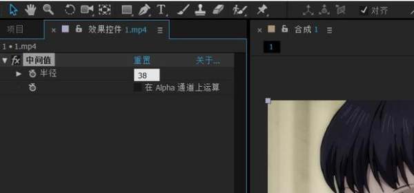 7、右键点击最下面的视频层,选择【效果】—【杂色和颗粒】—【中间值】。