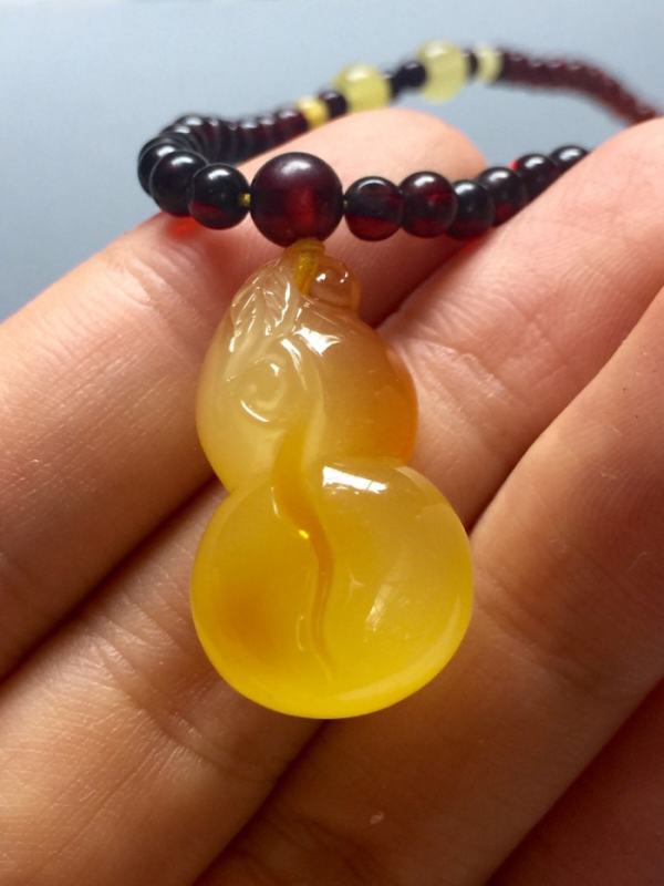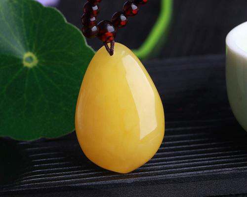 天然蜜蜡珠子放在手中轻轻揉动,会发出很柔和略带沉闷的声响,而塑料或树脂的声音则比较清脆。此方法只适合用作辅助鉴别。