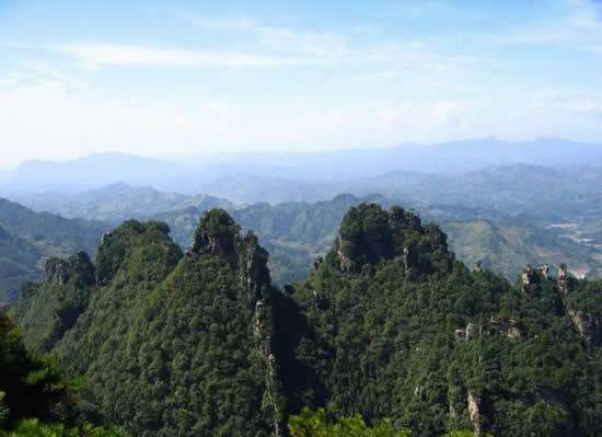 杨家界风景区东接张家界,北邻天子山,面积三十四平方公里。杨家界有香芷溪、龙泉峡和百猴谷三个游览区,其中知名景观有一步登天、空中走廊、龙泉飞瀑、绝壁藤王、白鹤聚会等二百余处。最高峰“一步登天”海拨1130米。杨家界境内沟壑纵横,溪水长清,植被茂密,森林覆盖率达95%。