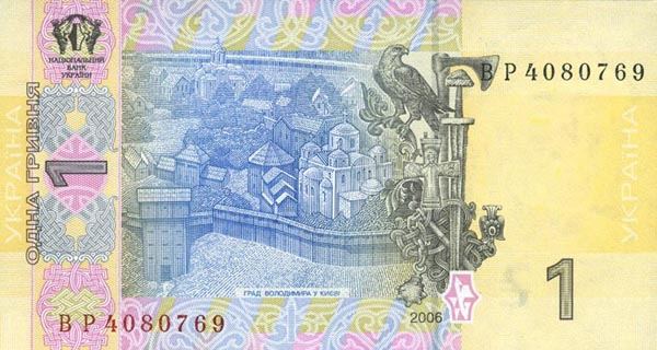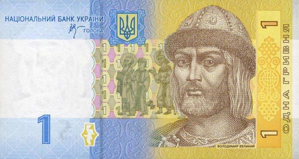 这是乌克兰的1格里夫纳纸币。纸币正面是乌克兰基辅大公弗拉基米尔一世,背面是位于乌克兰首都基辅的弗拉基米尔城堡。