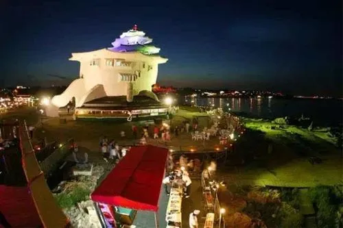 碧萝塔酒吧公园位于北戴河是秦皇岛著名的旅游景点之一,也是人们去秦皇岛旅游时最不想错过的好地方,那里有很多漂亮的热气球,可以呈热气球升空,还可以站在海边的礁石上拍照,随手一拍都是美丽风景,这个酒吧公园在晚上还有篝火晚会,有时会有精彩的表演,我去毙了他的酒吧公园时,曾经看到过精彩的人妖表演,是年轻人特别喜欢去的地方。