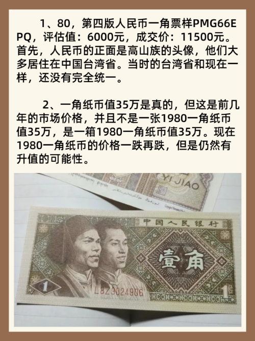 2、一角纸币值35万是真的,但这是前几年的市场价格,并且不是一张1980一角纸币值35万,是一箱1980一角纸币值35万。现在1980一角纸币的价格一跌再跌,但是仍然有升值的可能性。