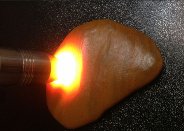 2丶紧挨着石头打灯光,只要略透的就是黄蜡石,至于里面是玉化还是石英这个就不多说了。