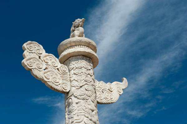 在尧舜以前华表是用来谤木的,就是说在上面刻着谏言,慢慢的后来华表上的谏言被象征着皇权的云龙纹所代替,变成了皇家的一种专属标志,专门用来装饰。不仅仅我们可以在北京的故宫和天安门能够看到华表在明十三陵,清东陵,清西陵和卢沟桥等地方也可以见到相似的华表,虽然它们的造型可能各有差异,瑞兽各有不同,但其实表达的基本意思是相近的。