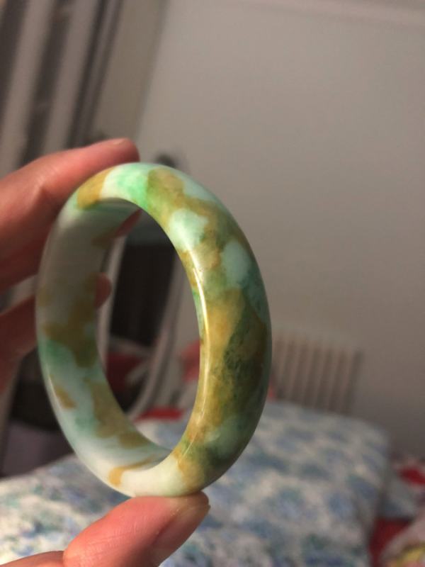 请问翡翠玉手镯带有黄色区域,是什么?是杂质吗?是不是A货?
