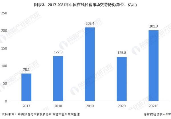 得益于我国旅游业迅速发展,在线民宿市场也发展迅猛。2019年我国在线短租用户和在线民宿市场交易规模分别达到2.28亿人和209.4亿元,同比增长55