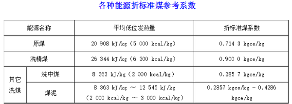我国采用的能源标准是标准煤,以此作为各种能源换算成标准煤时的标准量。国家标准(GB2589-81)规定,每千克标准煤的热值为29271千焦(即7000千卡)。(特别说明:根据GB2589-1990《综合能耗计算通则》标准规定,应用基低(位)发热量为29.3076MJ(兆焦)的燃料,称为1Kg(公斤)标准煤)统计中可采用“吨标准煤”,用符号tce表示。