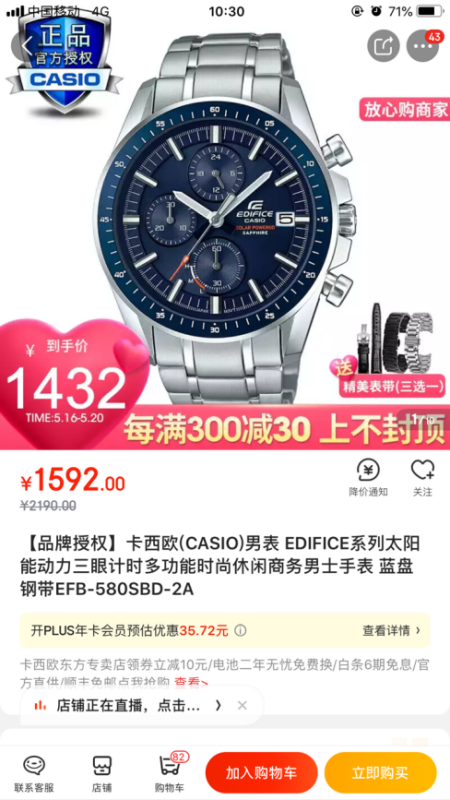 卡西欧三眼电子表。具体价格要看还有哪些机能,例如如果有光动能,电波的话就贵了。每个机能加一千。