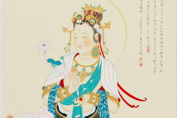观音手持莲花形象的寓意:持莲观音配童男、童女身。将纯真的少男少女比喻为莲花之花蕾,可感受到怀着纯净菩提心的持莲观音期待花儿盛开之心愿。