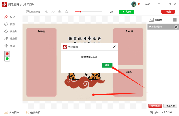 第五步、处理完成后,可以看到刚刚选择的水印全部都被去除掉啦;