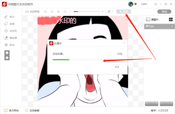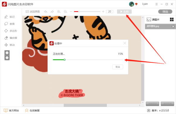 第四步、选择好水印后,点击上方的“去除”按钮,软件就会立即处理啦;