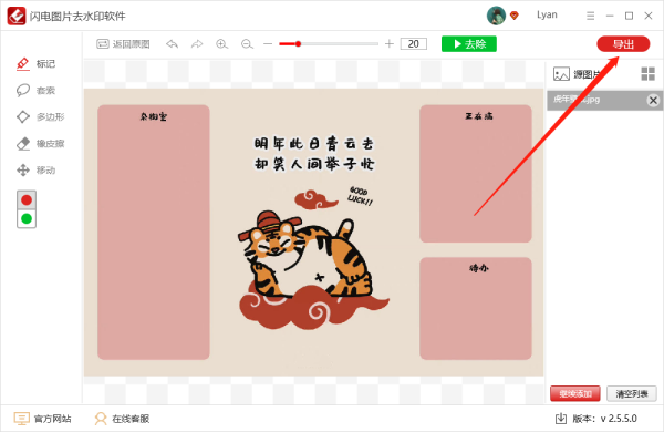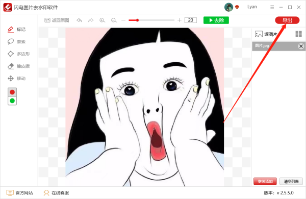 第五步、水印去除完成后,点击右上角的“导出”即可;