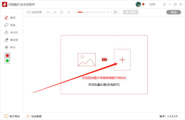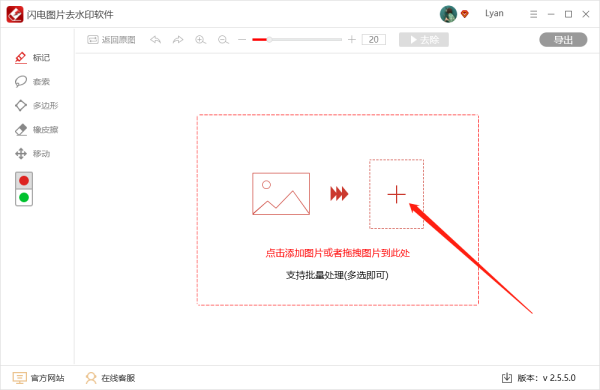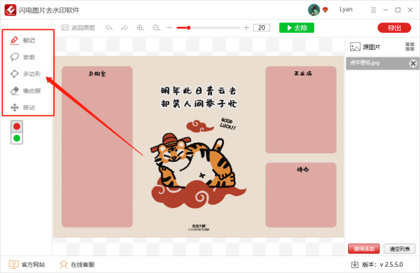 第二步、如图,在左侧选择“标记”,然后在选中需要去除的水印内容,色块较多的情况,建议分几次进行去除;