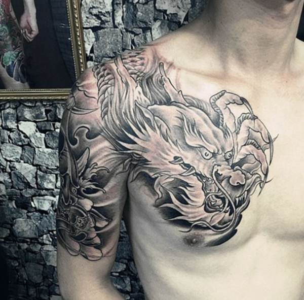 纹过肩龙的一般都是黑社会大佬,当然还有一些啥也不知道的社会地痞流氓,但如果不是大佬,你纹了一条过肩龙,又被人发现了,你出门是会被砍的,那么文一条残龙又是一个遗憾,难道就不能改成一条完整的过肩龙么?其实,民间流传着一种说法叫做:点睛,如果你能够接任某个黑社会组织的老大,你的上一任大佬,会亲手给你把眼睛画上,当然,这也是道听途说,具体的准不准谁不知道,因为我们大多数人印象中的黑社会大佬,都来自于香港的警匪片,具体的黑社会大佬,我们又几乎不可能见到。
