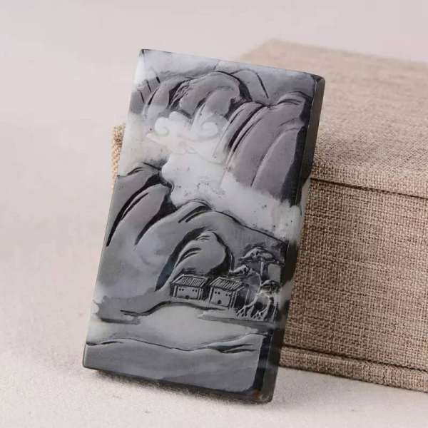 玉质致密度可以,油性糯性表现出色,缺点是青花籽料,色泽平普,黑白两色分布不甚明朗。