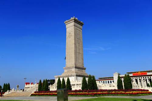 人民英雄纪念碑(Monument to the People's Heroes)位于北京天安门广场中心,在天安门南约463米,正阳门北约440米的南北中轴线上,是中华人民共和国政府为纪念中国近现代史上的革命烈士而修建的纪念碑。