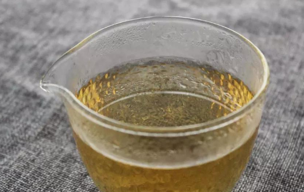 第三步,看汤色,桑黄煮水后,颜色金黄,通透,呈现天然金黄色泽,自然饱满,色泽均匀,如果汤色偏浅或者发暗黑色,有可能是其它杂树黄或者其它菌种,不选!