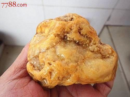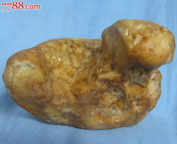 黄蜡石,因石表层内蜡状质感而得名。是石英岩矿物因为受地质变动影响,与酸性土壤混合,加上酸性土壤附近有地热或火山等自然条件,长期受酸性土壤和地热火山温度的双重催化,变质形成黄蜡石。所以结构紧密,韧性强,硬度6.5~7.5。