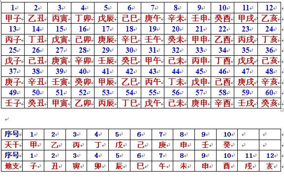不同的资料算法有所差异,有的会给出公式,但本质上是一回事。这里介绍一种简易直观的算法。 首先给每个天干、地支一个编号,从头以4开始按照顺序排下去,天干10后接1,地支12后接1。