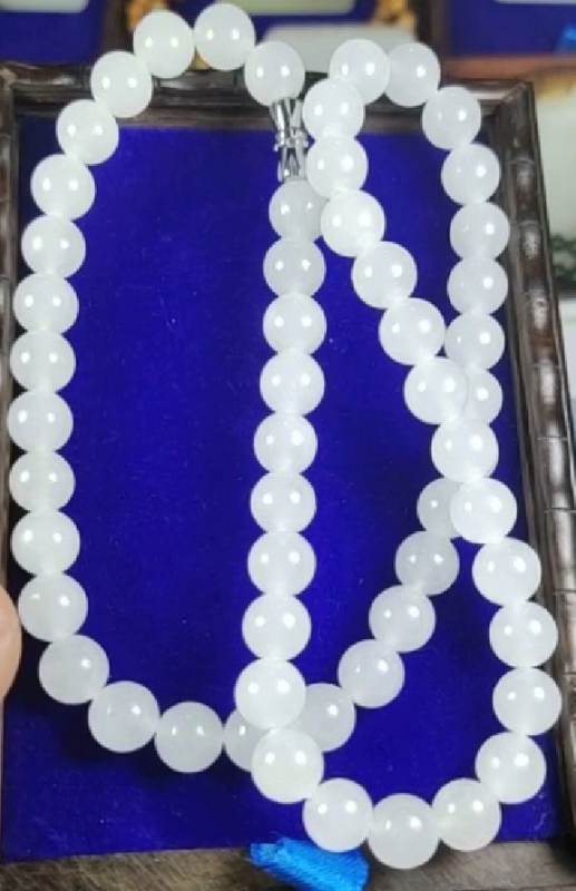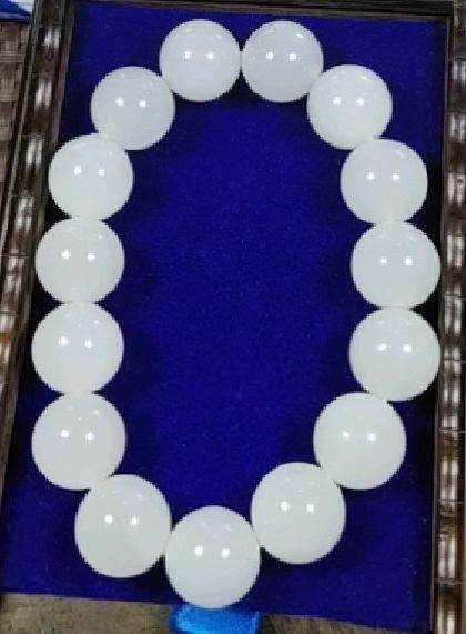 这是一款和田白玉手串,达不是羊脂级的白玉,内部有棉状体,属于常见的材质,质地细腻油润,光泽度较好,自己喜欢玩玩还行。