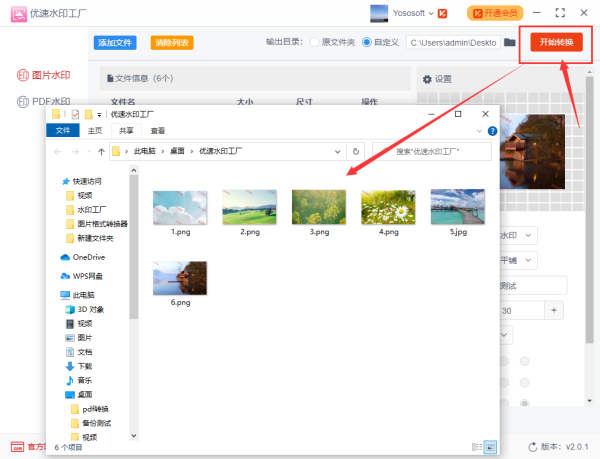 第4步,没问题的话就点击【开始转换】按钮,启动软件。处理完成后软件会自动打开一个文件夹,添加文字后的图片会保存到里面。