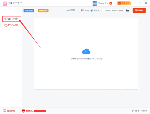第1步,安装打开优速水印工厂,点击软件左边上面的【图片水印】功能。