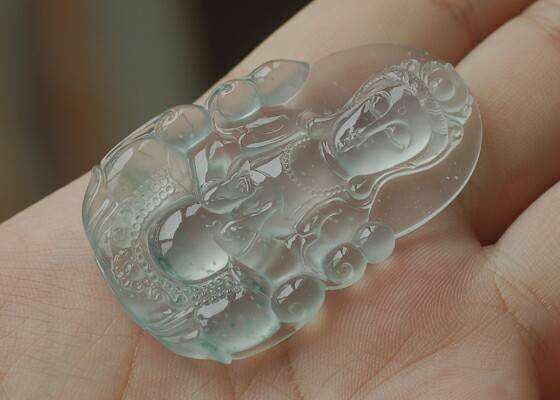 品质较好的翡翠观音菩萨吊坠图示,可以比对质感的区别:
