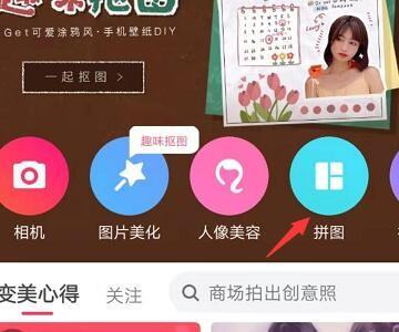 2、进入美图秀秀首页,点击“拼图”选项,如下图所示。