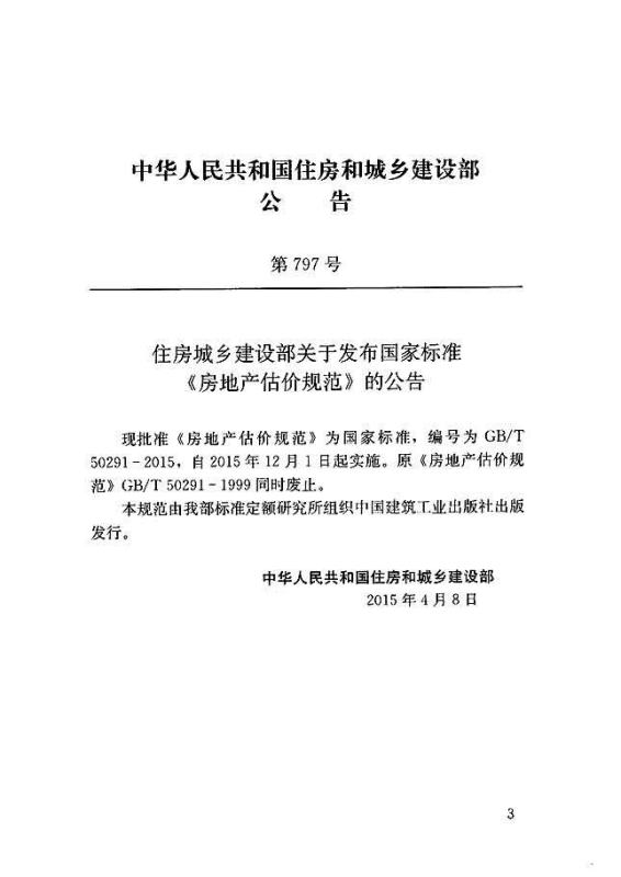房地产估价规范[附条文说明] GB/T 50291-2015,本规范的主要内容是:1.总则;2.估价原则;3.估价程序;4.估价方法;5.不同估价目的下的估价;6.估价结果7.估价报告;8.估价职业道德。