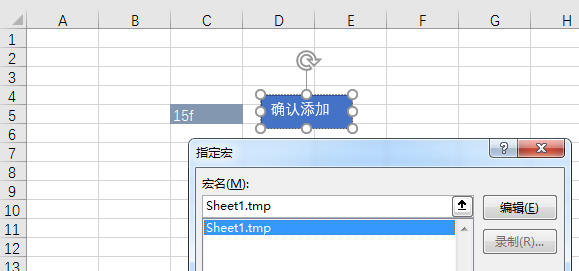 在”sheet1"表上插入一个矩形并确认,在矩形上右击,选“编辑文字”,输入如“确认添加”;