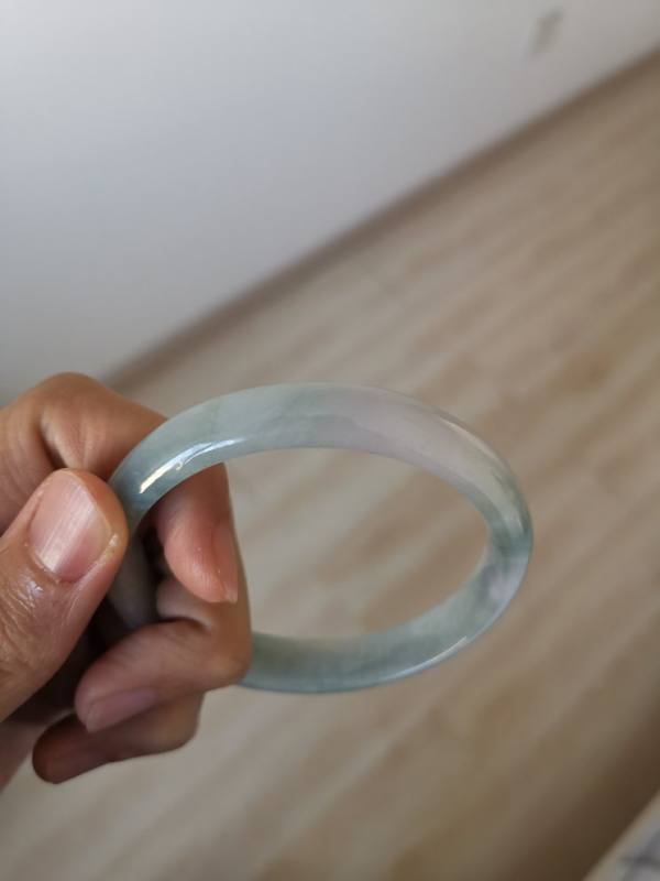 糯种带油青色翡翠手镯,内部棉较多,水头短了点,稍细了些,整体看起来还是不错的,无纹无裂的情况下,个人心理价位四千左右的市场价格比较合理