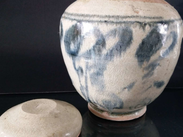 唐代的青花瓷器是青花瓷的萌芽期,处于初创阶段。现在能见到的标本有20世纪70~80年代扬州出土的青花瓷残片二十余片;香港冯平山博物馆收藏的一件青花条纹复;丹麦哥本哈根博物馆收藏的一件鱼藻纹罐;南京博物院收藏的一件点彩梅朵纹器盖。通过对扬州出土瓷片的胎、釉、彩进行研究,初步断定唐青花的产地是河南巩县窑。
