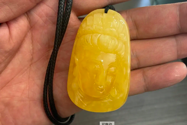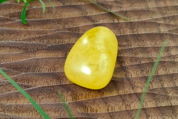 4、柠檬黄蜜蜡:柠檬黄蜜蜡同样作为黄色系的蜜蜡,颜色相比于鸡油黄来说更浅,颜色呈现出像柠檬皮一样淡黄色,纹路也非常少,清爽雅致,给人一种放松、淡雅的感觉。