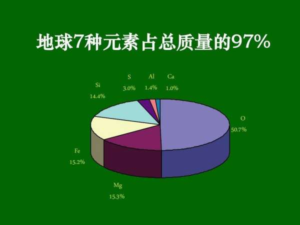 说来说去,它们都是由原子构成的,原子的种类按元素划分有100多种,而地球上总共存在90多种天然元素。地球上的岩石基本上都含有二氧化硅(SIO2),此外还含有镁、铝、钙、铁等元素。据统计,仅氧、镁、铁、硅、硫、铝、钙这7种元素就占地球总质量的97%,地球上的岩石主要就是由这几种元素构成的。