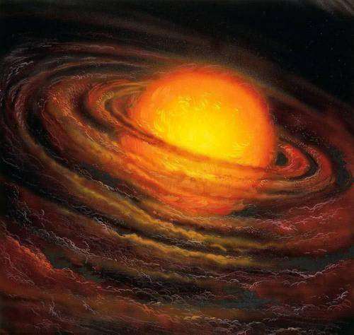 如上图所示,太阳诞生之初太阳系内一片混沌。