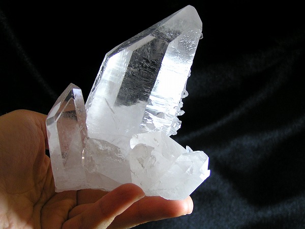 2、结晶习性:结晶完美的水晶晶体属三方晶系,常呈六棱柱状晶体,柱面横纹发育,柱体为一头尖或两头尖,多条长柱体连结在一块,通称晶簇,美丽而壮观,形状可谓是千姿百态。除了常见的长柱状外,还有似宝剑形,有的若板状,有的如短柱形,有的像双锥。有的小如手指,有的大如巨石;有的不足半两,有的重达300多公斤。